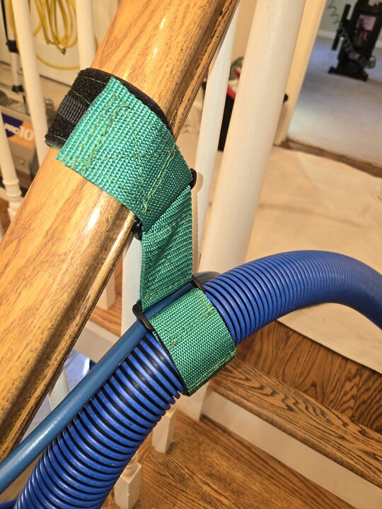 Here's where that hose strap really comes in handy . The hook would leave marks in the wood . I find it useful also when doing stairwells and for whatever reason the hook won't workJust look at this thing, how can it get better than that? One can even chose their favorite color. Thanks Dwain-o!