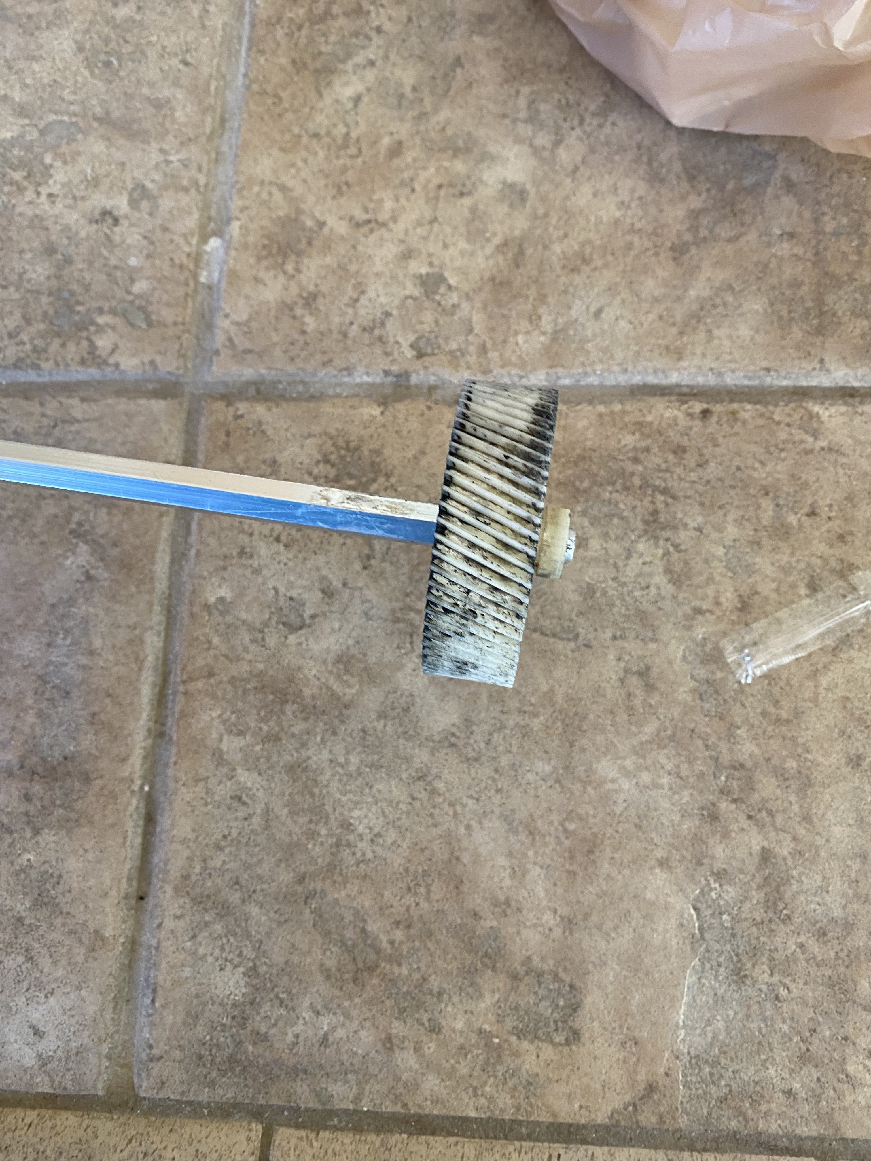 One of my brushes stopped turning yesterday. I Figured I stripped out a gear. Took it all apart and looked at the gears and everything looked good. Then I noticed the shaft that goes through the roller. You can see in the pic the shaft end is worn down to the point where it was free spinning inside the gear. Anyone know where I can order just the aluminum shaft?