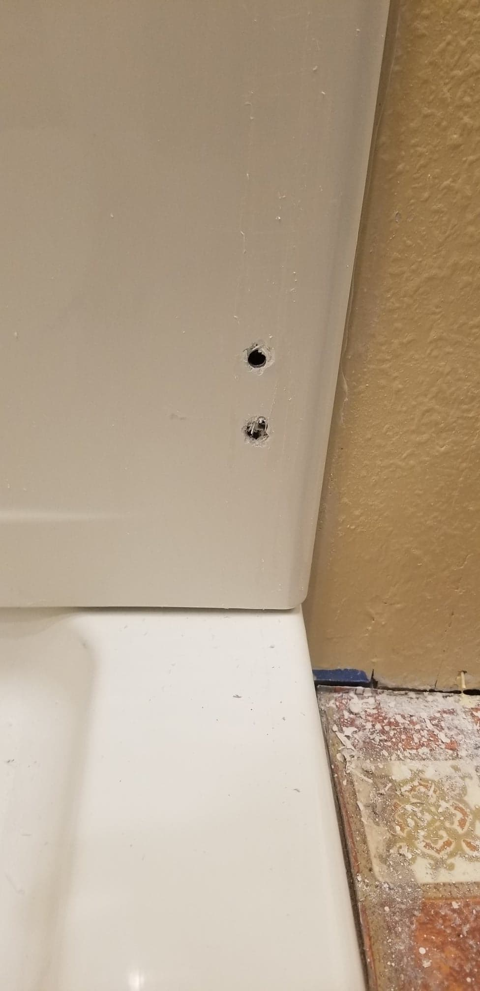 My buddy f'd up an drilled into his fiberglass shower on the wrong side.