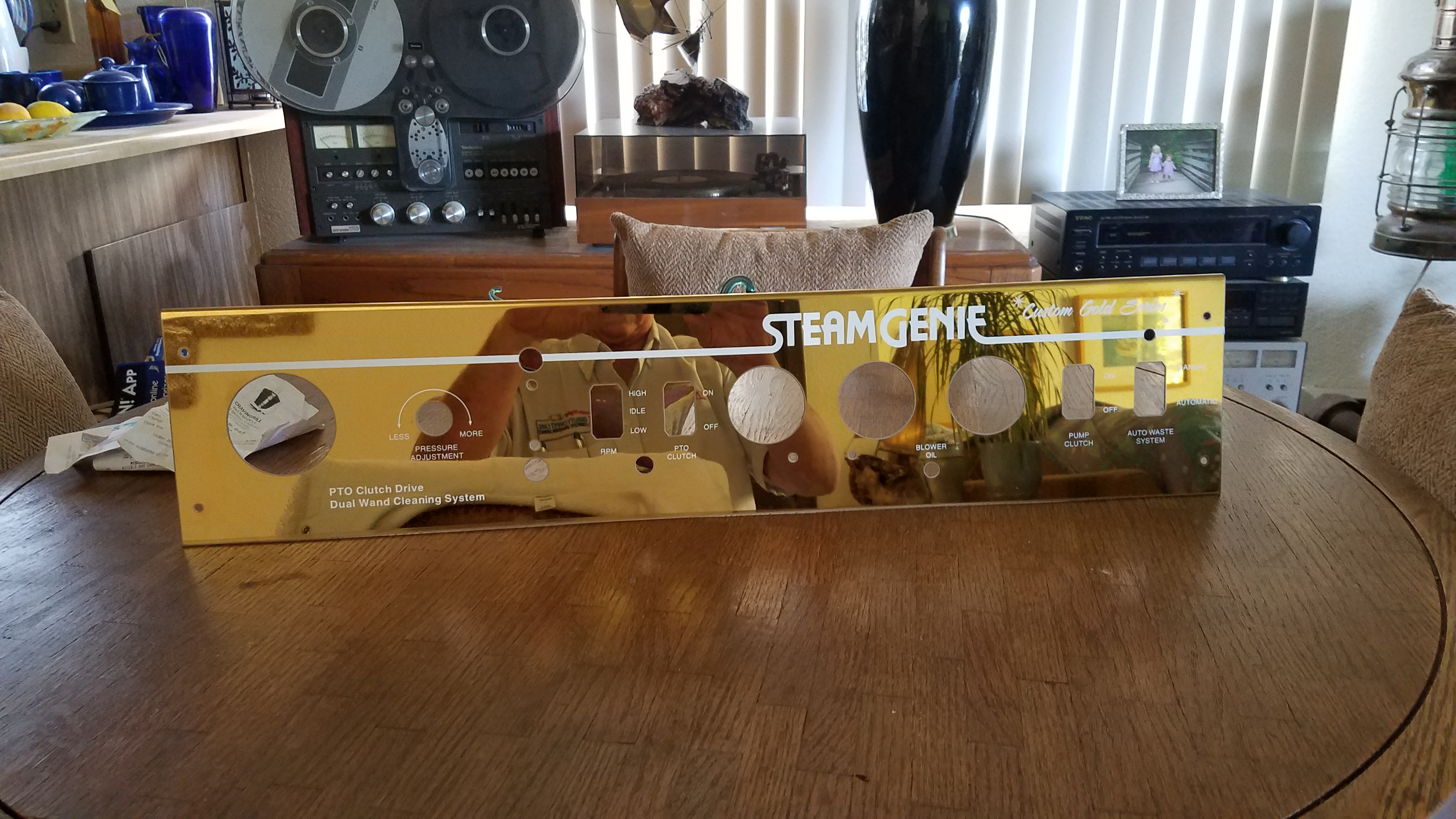 I had a friend that had a large sheet metal manufacturing facility 300+employees . made components for slot machines, and made me some 24k gold panels for some hydro2's i was going to build in 1999, but before i could get 1 done i started buying the pto's and abandoned the hydro2 project. When it came time to build frankinstien i took one of them down and had it waterjet cut down for frankinstien's control panel